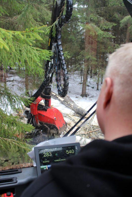 – Kelien puolesta tämä talvikuusikon harvennus onnistuu vielä ihan hyvin. Lauhojen kelien jatkuessa me saamme kyllä puut aina jollain tavalla tienlaitaan, mutta automiehillähän ovat sitten omat ongelmat teiden kestävyyden kanssa, kommentoi hirvensalmelainen yrittäjä Tuomas Torniainen.