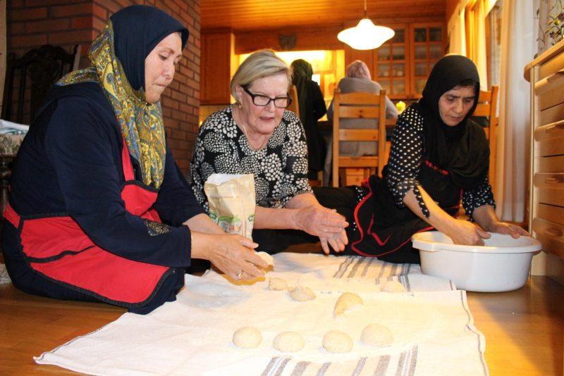 – Meillä oli aiemmin yhteiset karjalanpiirakkatalkoot. Afgaaniystävämme oivalsivat rypyttämisen jalon taidon heti ja ihan kuin olisivat tehneet niitä ennenkin. Nyt meitä on niin monta kokkia ja mitäs siitä onkaan tapana sanoa. Katsotaan mitä tästä tulee, naurahtaa talon emäntä Pirjo Auvinen.