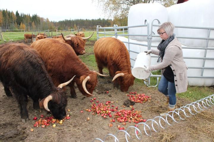Sen sijaan Kyckling kävelee muitta mutkitta sisään aitaukseen, jossa oleilee monta sataa kiloa painavia Ylämaankarja-rotuisia nautoja. Hauskan näköisillä kasvateilla on suuret sarvet ja paksu pitkäkarvainen turkki. Kyckling menee laumasta hieman sivummalle ja esittelee pahnojen päällä oleilevan Kaneli-hiehon. Hän ottaa kumisaappaan varresta rautaisen kamman ja kampaa hiehon otsatukan sivulle. Sen jälkeen hän asettautuu jässikän viereen kuvattavaksi, eikä pelota yhtään.