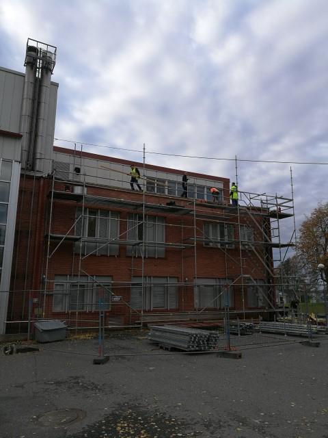 Rakennustelineet ilmestyivät kunnantalon takapihalle jo viime viikolla. Varsinaiset saneeraustyöt alkoivat tämän viikon alussa.