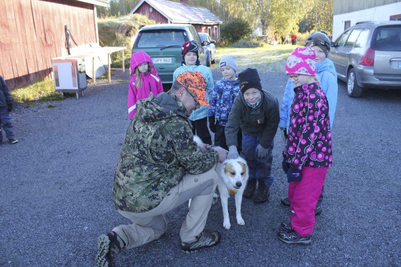 Koululaiset tunnistivat eläimiä, ampuivat laseraseella ja tutustuivat metsästyskoiriin.