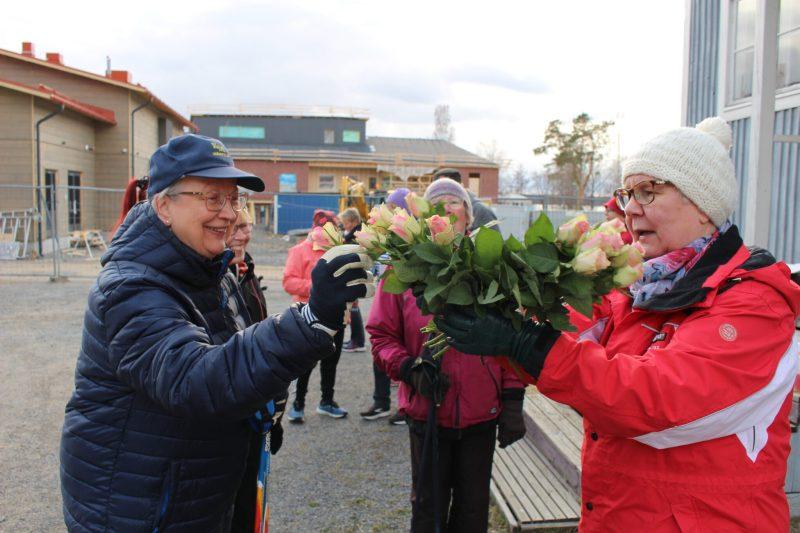 Marttojen perinteinen Ruusukävely keräsi Seuratalon pihalle 26 osallistujaa.