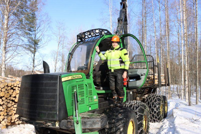 Pian metsäkoneenkuljettajaksi valmistuva Santeri Luntta valmistautuu Taitaja-finaaliin.